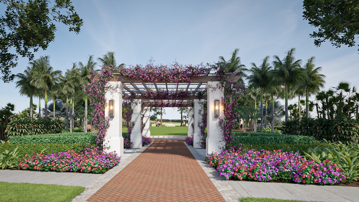 - You’ll be welcomed with a sparkling fountain, wrought iron gates, pergolas with bougainvilleas, and beautiful landscaping.